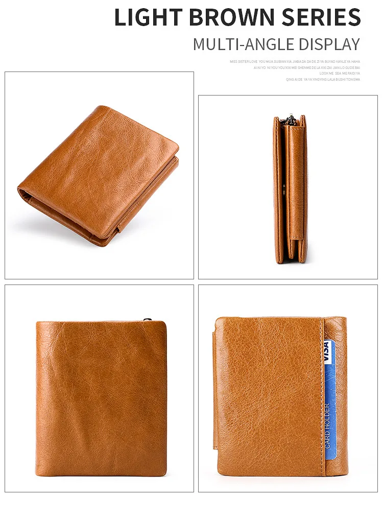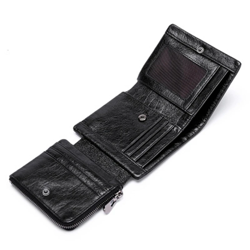Big Deal Men's Leather Mini Wallet Card Holder Small Zipper Brand Trifold Men Clutch Multi-function Fashion