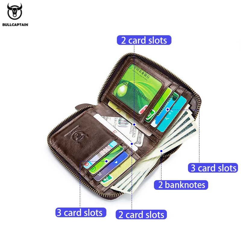 Good Price BULLCAPTAIN men's wallet RFID anti-theft leather wallet men's zipper wallet card coin wallet card h